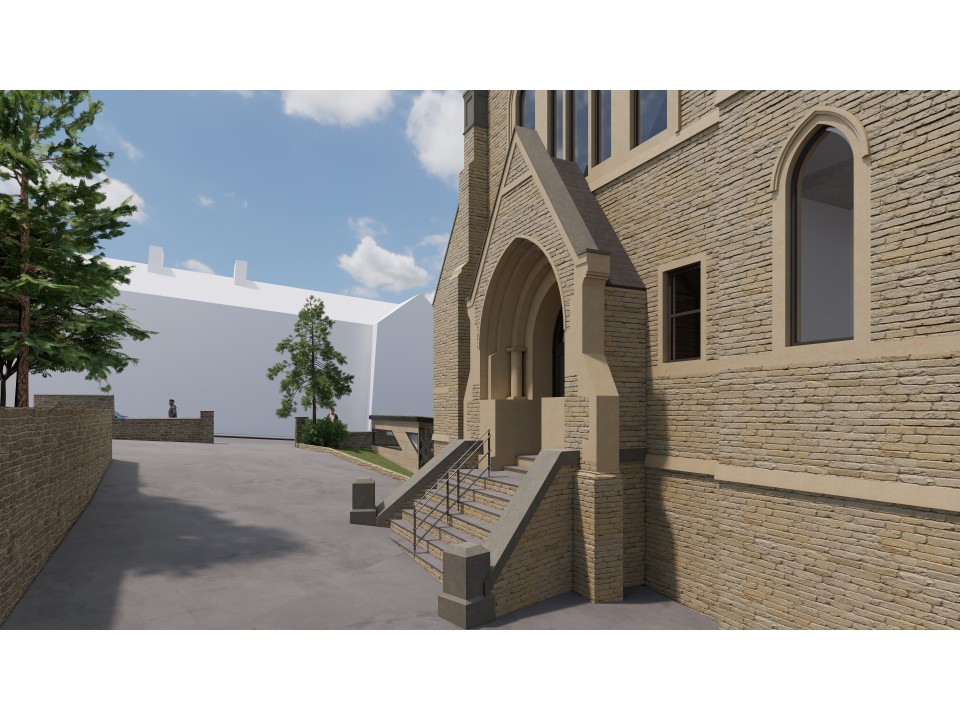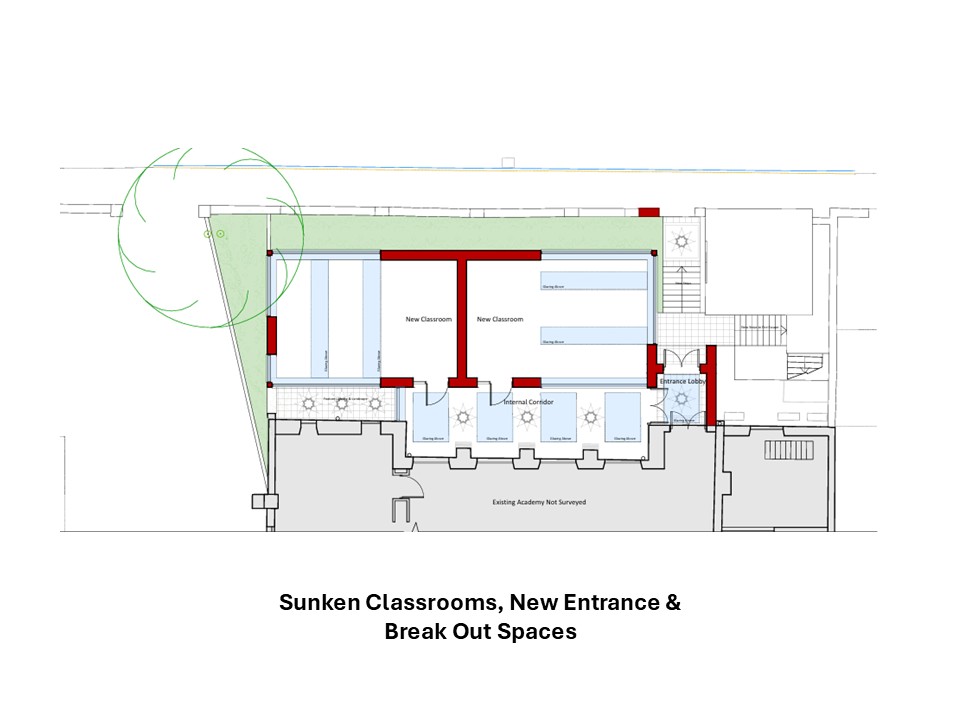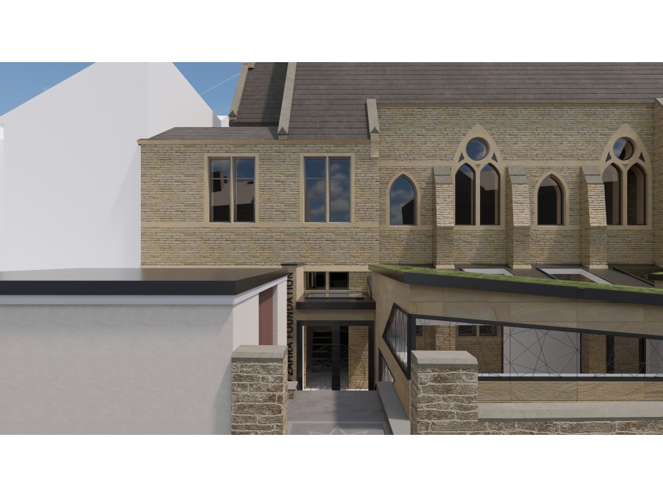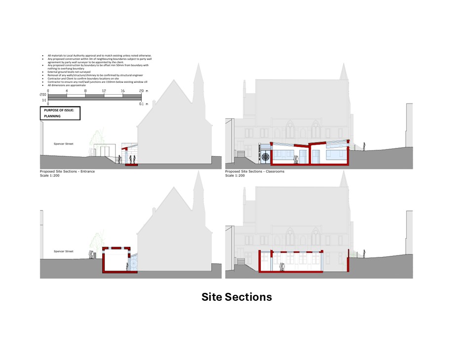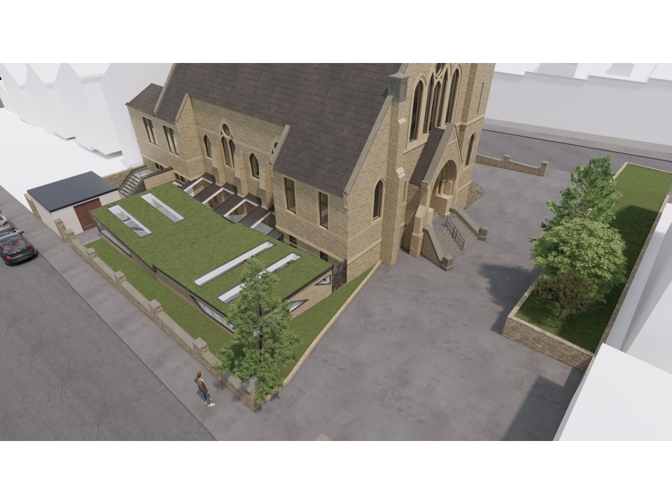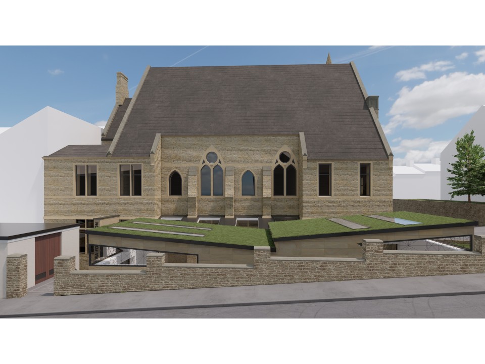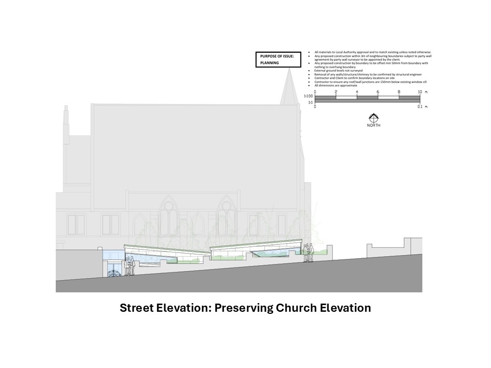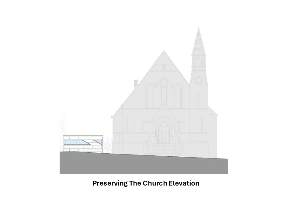 Blackstone Architects were commissioned to design a thoughtful extension that would expand the available floor space and provide two new classrooms. The proposal placed these classrooms beside the existing church, subtly sunken into the ground and topped with green roofs—carefully designed to minimise visual impact from the street and preserve the beauty of the church’s historic elevations.