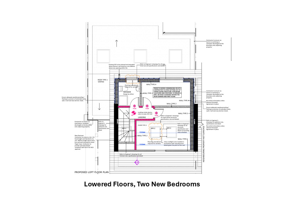 Blackstone Architects were appointed to create to two additional bedrooms to an end of terrace house with restricted head height and limited floor space.
